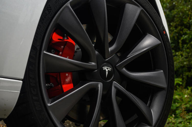 在車身側(cè)面,Model 3同樣以弧線為主,整個車頂找不到一絲棱角,顯示出較為運動的跑車姿態(tài),而Polestar 2則延續(xù)了犀利的風格,隨處可見的折角,筆直的腰線,硬朗的車頂下墜線條等細節(jié)都非常的鮮明。