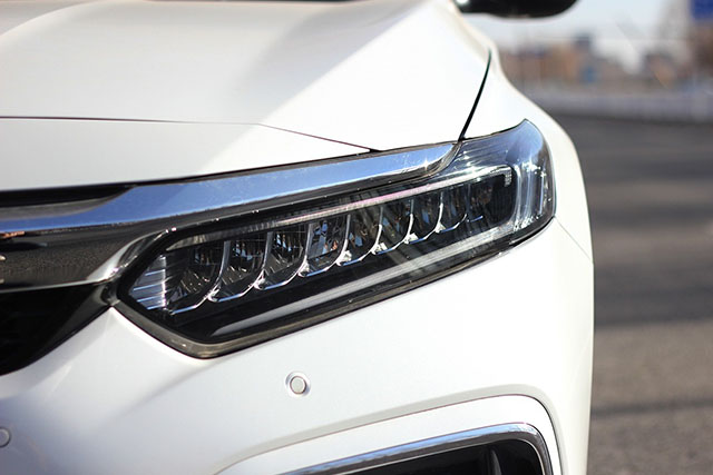 不難看出,INSPIRE在外部細(xì)節(jié)堆疊上不敢急功近利,引擎蓋和尾廂蓋保留了討巧的折痕,走線精致的側(cè)裙也是外部亮點(diǎn)之一,但相比于雅閣,INSPIRE在加入全LED燈組的同時(shí),還采用流動(dòng)式日行燈,進(jìn)一步補(bǔ)齊了外觀時(shí)尚度。