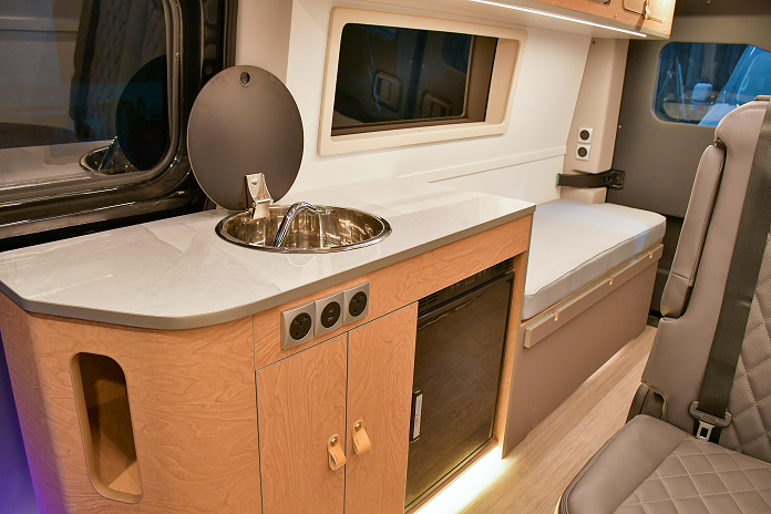 在空間布局上,先鋒官V宿營車更是將“實用與舒適”做到極致。得益于方正的車身結(jié)構(gòu)與同級領(lǐng)先的 1.82m 內(nèi)寬,為改裝預(yù)留了充足空間——通過模塊化分區(qū)設(shè)計與人性化動線規(guī)劃,將睡眠區(qū)、會客區(qū)、獨立衛(wèi)浴系統(tǒng)、廚房區(qū)及儲物空間高效整合,實現(xiàn)“一車多用”的全能體驗,讓旅途既自在又整潔。