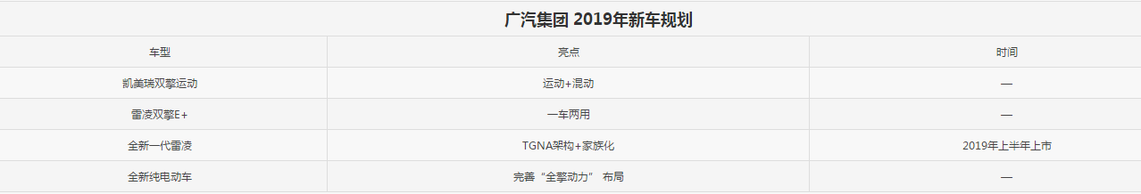 近日,豐田汽車公布了2019年在華銷量目標為160萬輛。而廣汽豐田作為其中一員,也將承擔起重要的責任。根據(jù)規(guī)劃,2019年,廣汽豐田將向中國市場投入四款新車,具體見下表: