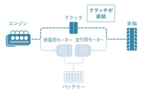 Sport Hybrid i-MMD還有離合器,他的作用是讓發(fā)動機的動力通過離合器與車輪直接相連,之間沒有通過電動機和其他齒輪,這種直連的方式可以將發(fā)動機動力高效的傳遞給車輪,減少動力損失。