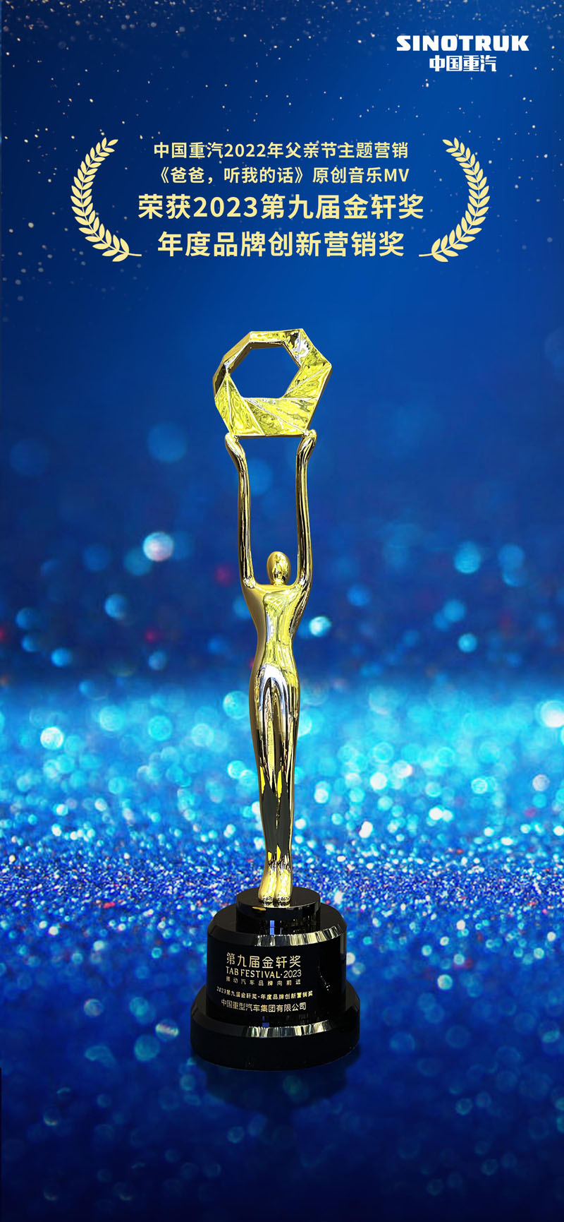 六月過半,父親節(jié)即將到來。每到父親節(jié)的節(jié)點,各大品牌均不約而同以致敬父愛為主旋律開展?fàn)I銷活動。2022年父親節(jié)期間,一向在營銷上“亮點頻現(xiàn)”的中國重汽,暖心推出《爸爸,聽我的話》原創(chuàng)音樂MV,邀請卡車家庭的孩子們唱出對爸爸的關(guān)愛,用一份特別的父親節(jié)禮物,向已為人父的卡車司機表達敬意,在父親節(jié)流量高峰期成功突出重圍,斬獲中國汽車營銷權(quán)威獎項金軒獎授予的“年度品牌創(chuàng)新營銷獎”。